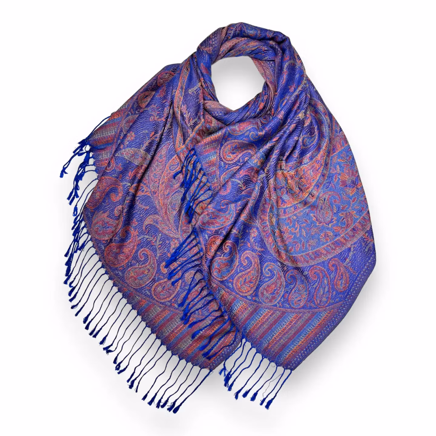 Det klassiska paisleymönstret möter en mjuk och följsam väv som faller vackert, oavsett hur du bär den. Med sina generösa mått på 180 × 85 cm kan du svepa den runt halsen, bära den som sjal över axlarna eller låta den bli ett blickfång till din favoritjacka.