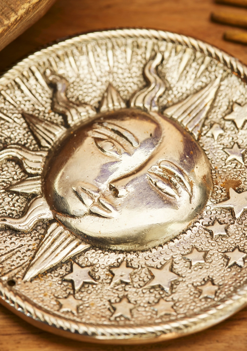 Rökelsehållare i återbrukad Aluminium med Sol och MåneStorlek 10 cm