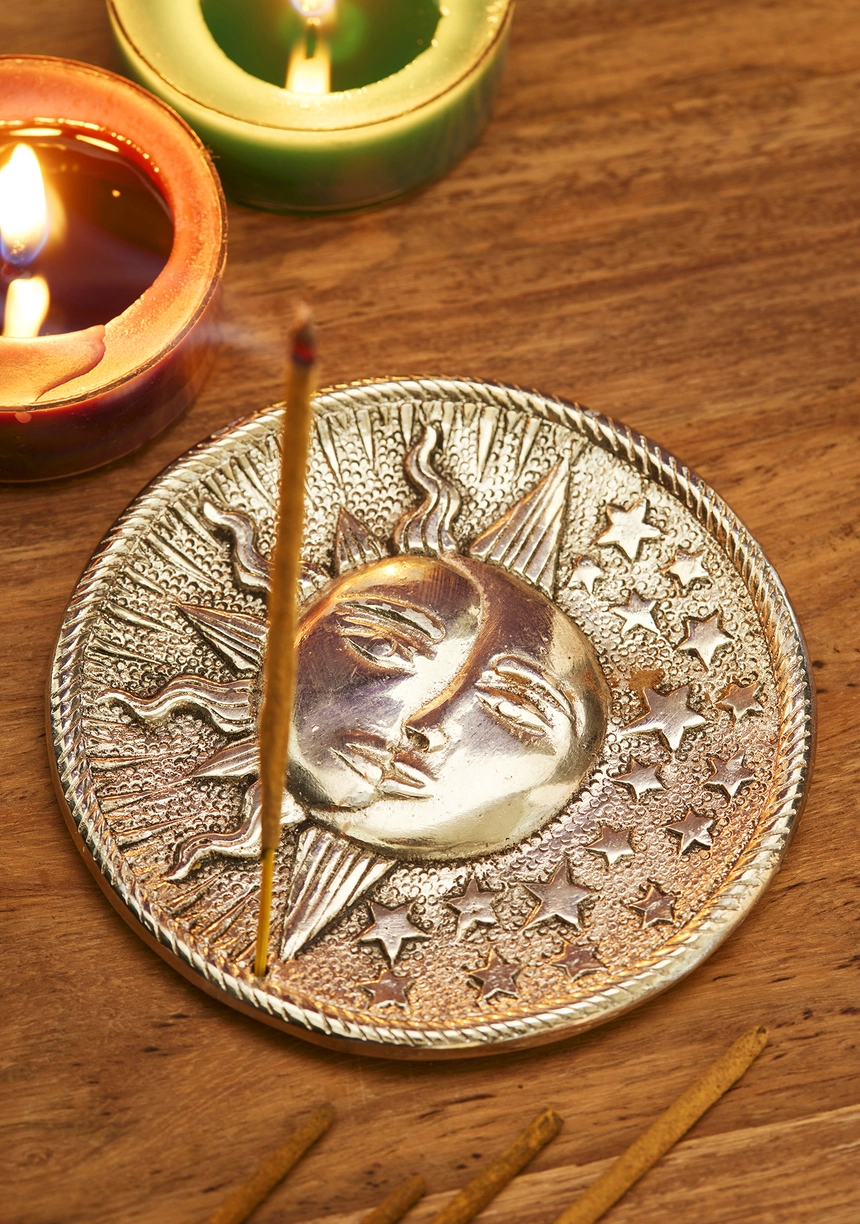 Rökelsehållare i återbrukad Aluminium med Sol och Måne