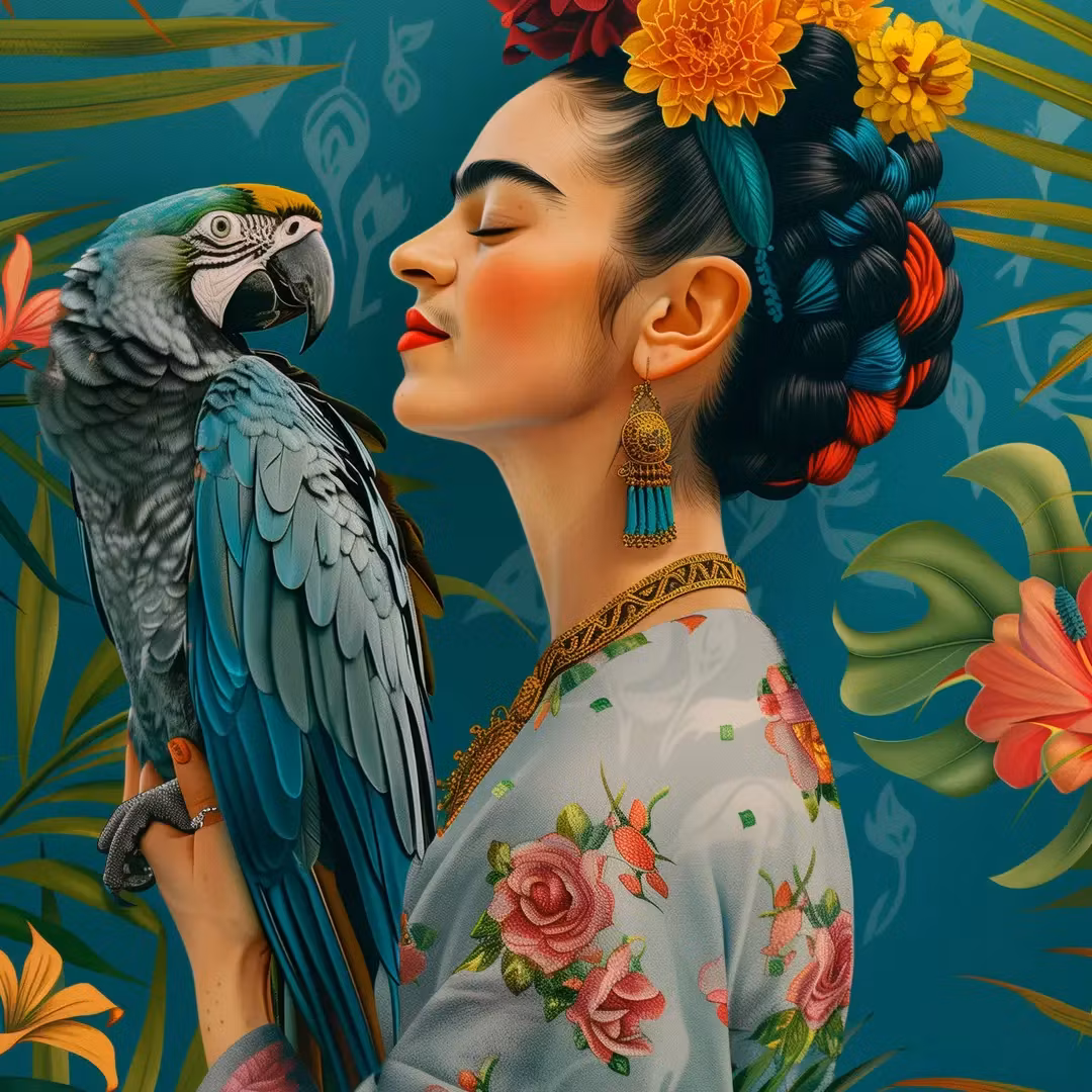 Vykort Frida Kahlo Papegoja - Butik Mandala